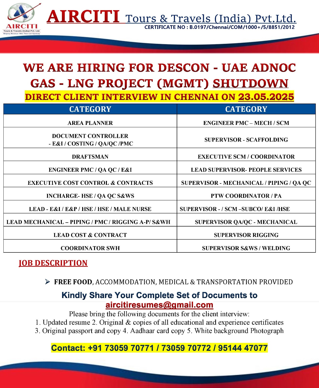 WE ARE HIRING FOR DESCON – UAE ADNOC