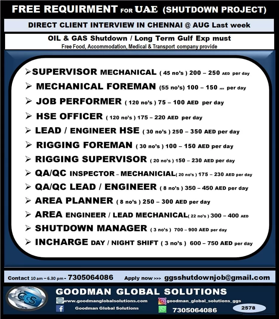 FREE REQUIREMENT – UAE ( 3 – 4 month SHUTDOWN PROJECT)