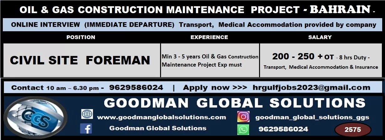 ONLINE INTERVIEW (IMMEDIATE DEPARTURE) Transport, Medical Accommodation provided by company