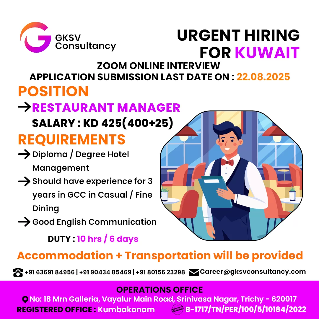 #restaurantmanager #RestaurantManagerjobs #hotelmanagement #hotelmanagementjobs #casualfinedining #casualfinedining #finedining #casualdining #gccexperience #gccexperience #kuwait #KuwaitJobs #KuwaitJobs2025 #kuwaitjobsearch #kuwaitjobsoffers #jobsearch #jobopportunity #jobopportunities #jobs #jobalert