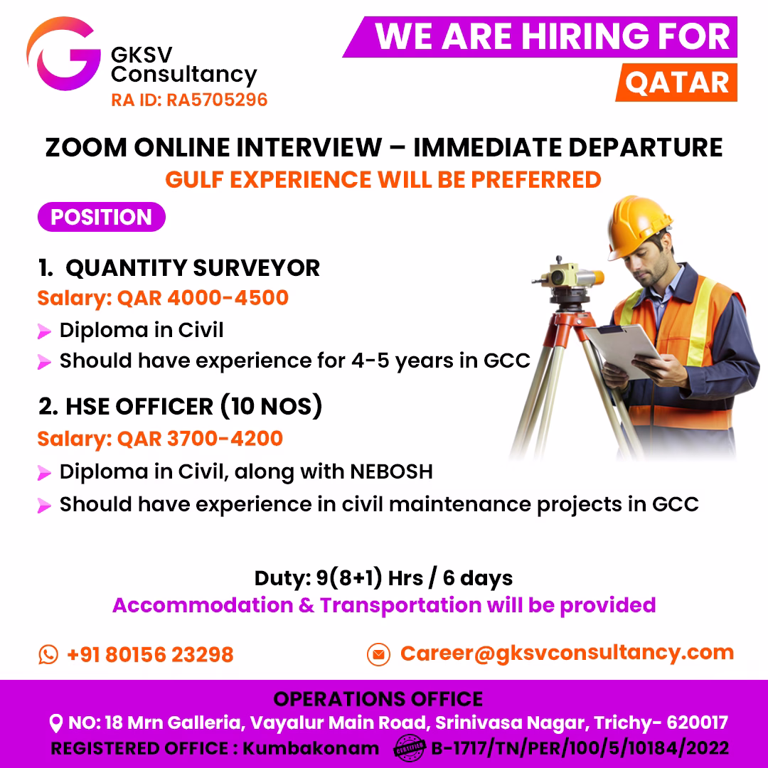 #dubaijobs #gccjobs #gulfjobs #middleeastjobs #overseasjobs #abroadjobs #qatarjobs #kuwaitjobs #saudijobs #uaejobs #bahrainjobs #omanjobs #JobSearch #civilengineer #safetyofficer #quantitysurveyor #hseofficer #NEBOSH #civilengineer #engineers