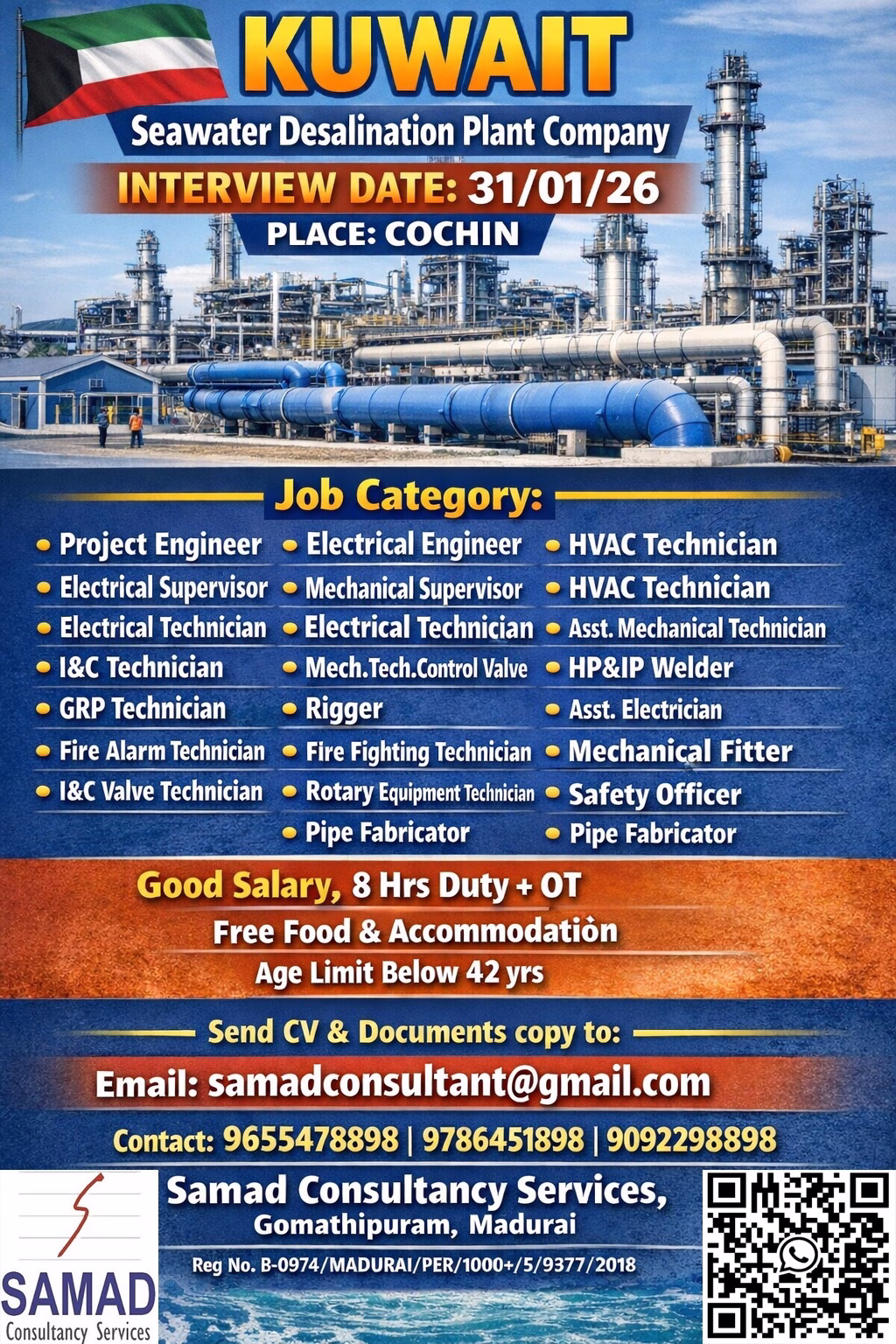 Direct Intervew at Cochin on 31/01/26 (Saturday)