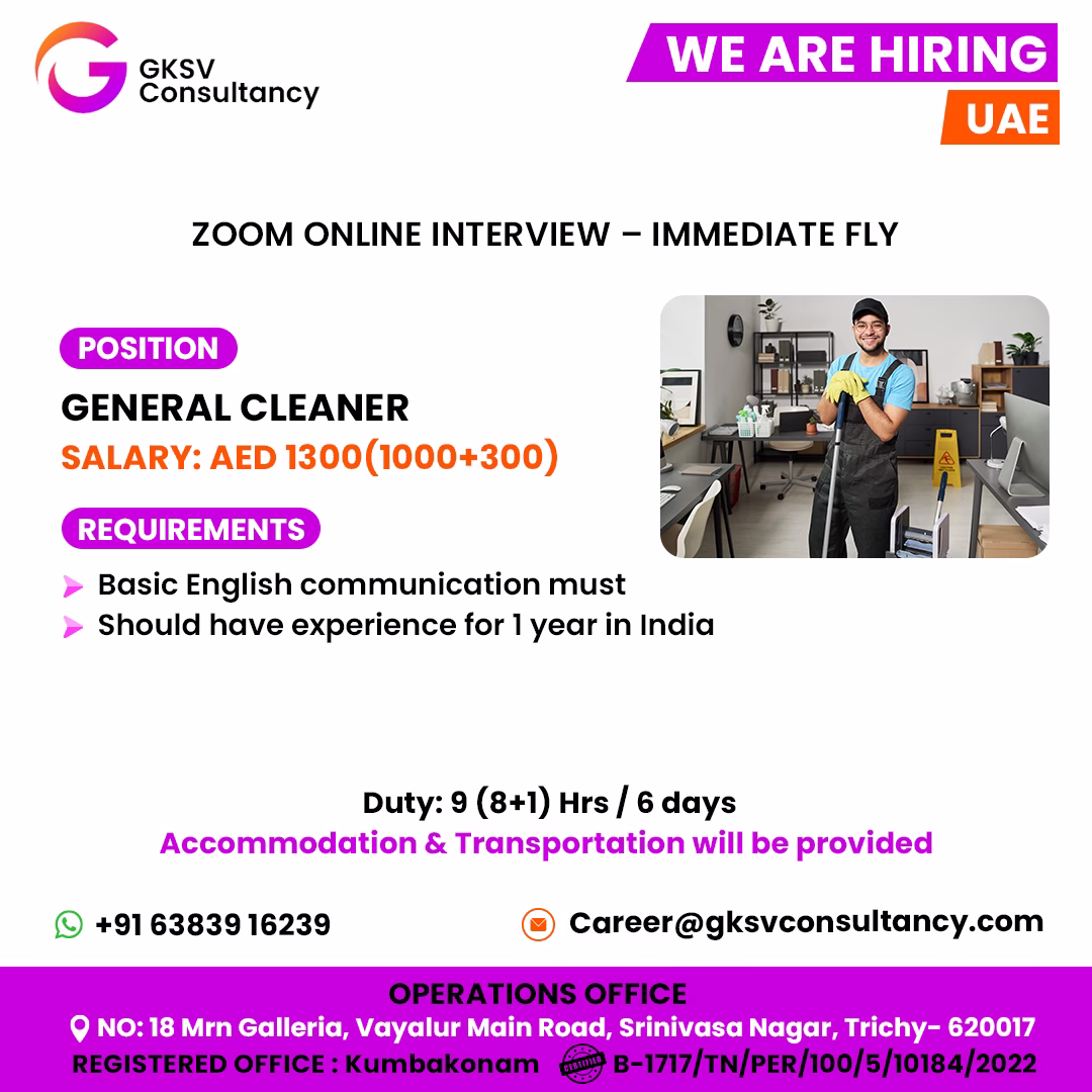 #dubaijobs #gccjobs #gulfjobs #middleeastjobs #overseasjobs #abroadjobs #qatarjobs #kuwaitjobs #saudijobs #uaejobs #general #cleanerjobs #cleaningjobs