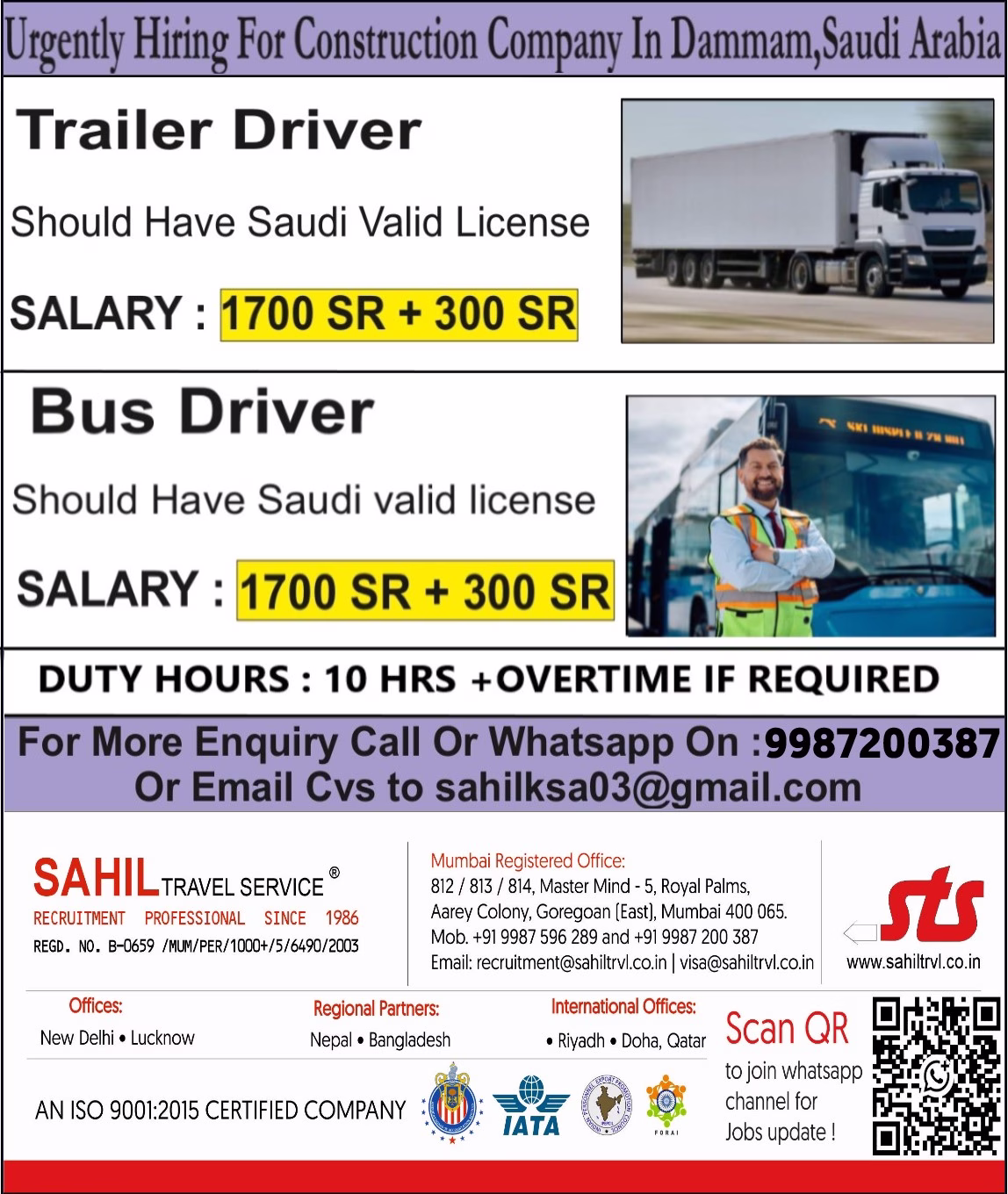 2.Bus Driver (Saudi Large bus Lic only – valid)