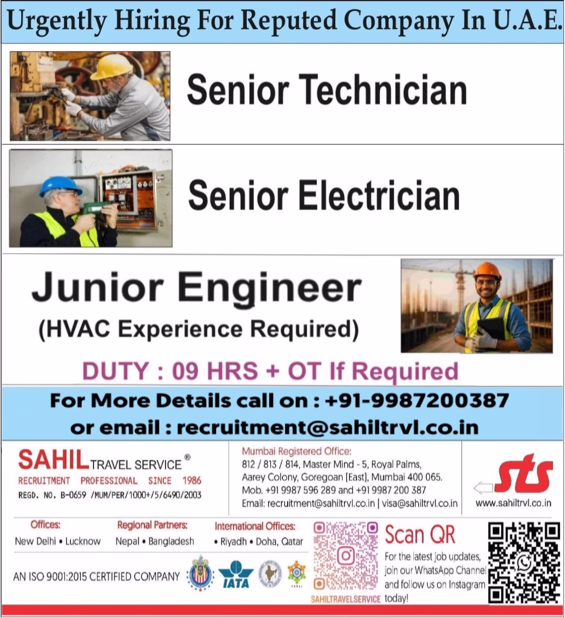 A leading Maintenance Industry in UAE is urgently hiring experienced professionals for immediate deployment.